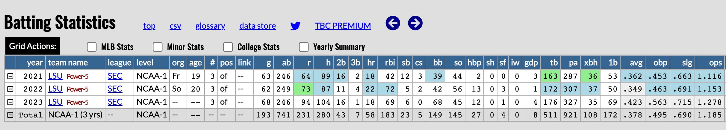 The 2 Best Outfielders: Dylan Crews looks perfect and I mean PERFECT in a baseball uniform. Lean and explosive. Athletic and durable. Great hair. Fast twitch everything. Balanced. Beautiful. He can get on base over a .400 clip at the MLB level and play gold glove defense while swiping 20 bags and hitting in the middle of the order. Andrew McCutchen but maybe better, which is just a fuckin crazy thing to say about a guy NOT in the big leagues.