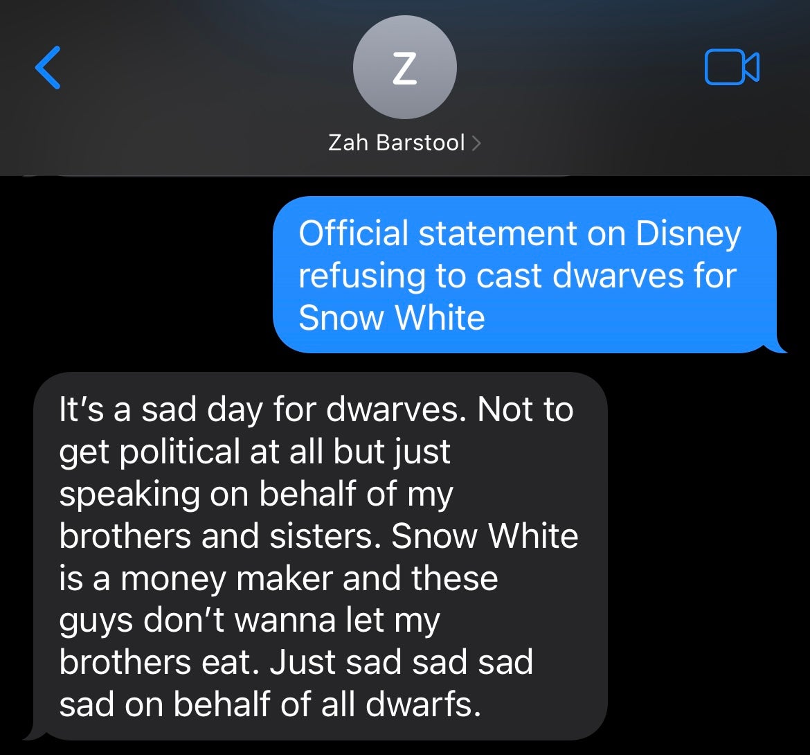 And there you have it. It's a sad day, indeed. Disney went woke and now they're going broke. (Not actually but you get what I'm saying.) They chose to take one of their oldest, most iconic, franchises and give it the makeover no one asked for or needed. They replaced Snow White's seven dwarves with seven "magical creatures of all genders and sizes." Yes, that's a real sentence. It's also one of the most confusing sentences I've ever written. Like what are magical creatures of all genders and sizes and is that necessary to the roll? Because in the first movie all seven of the dwarves were diamond miners. They didn't have magical powers, they had personality disorders. Too sleepy, too grumpy, too bashful, too sneezy, and too stupid,