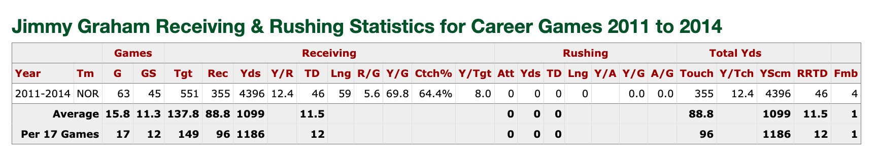 It's pretty cool to see Jimmy Graham presumably cap off his career where it all started. The New Orleans Saints drafted a supreme athlete better known for basketball with 17 catches at the University of Miami and helped him blossom into a superstar. Although Graham's peak turned out to be his first five-ish years in the NFL, he's been a more-than-serviceable pass-catcher for a dozen seasons.