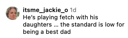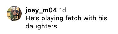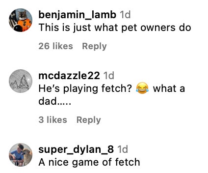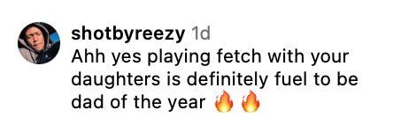But, naturally, in true internet form, a large slew of commenters had other thoughts that were quick to crap on him for "playing fetch with his kids like they're dogs".
