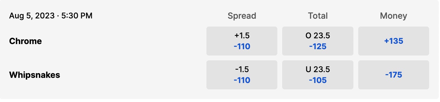 Saturday, 5:30pm // Whipsnakes (2-4) vs Chrome (1-5) // ESPN+