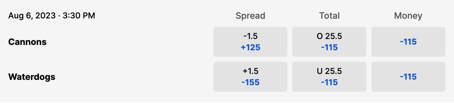 Sunday, 3:30pm // Waterdogs (4-2) vs Cannons (4-2) // ESPN+