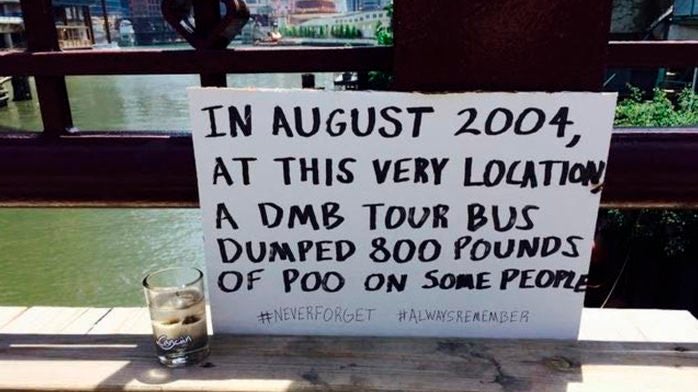 There Is Now A (Makeshift) Plaque On The Kinzie St Bridge In Chicago, Commemorating The Time Dave Matthews Band's Tour Bus Dumped 800 lbs Of Shit On A Tourist Boat Cruise