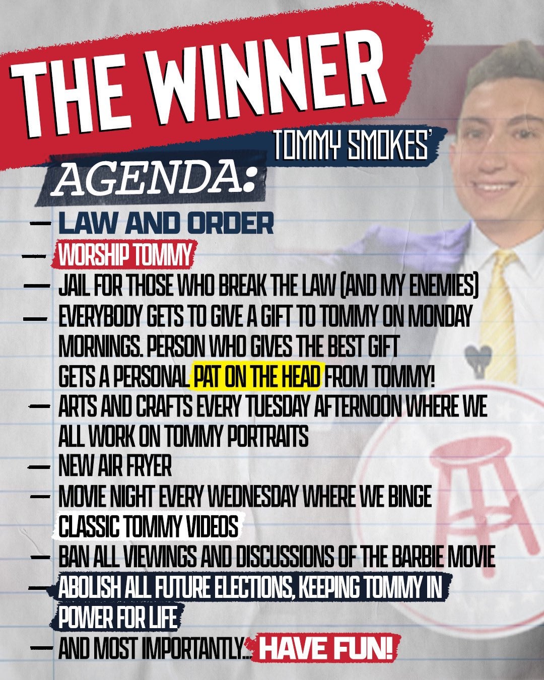 The Barstool New York presidential election has been going on all week. The field started with many but is now down to just two. On one hand there is me, Tommy "The Winner" Smokes. And on the other hand, there is Corporate Kelly Keegs. The HR loving, content hating, Anthony Fauci worshipping, mask wearing WOMAN. She has vowed to gut the budget for Barstool content so we can hire more HR people and give raises to the sales floor. Here is a look at her agenda.