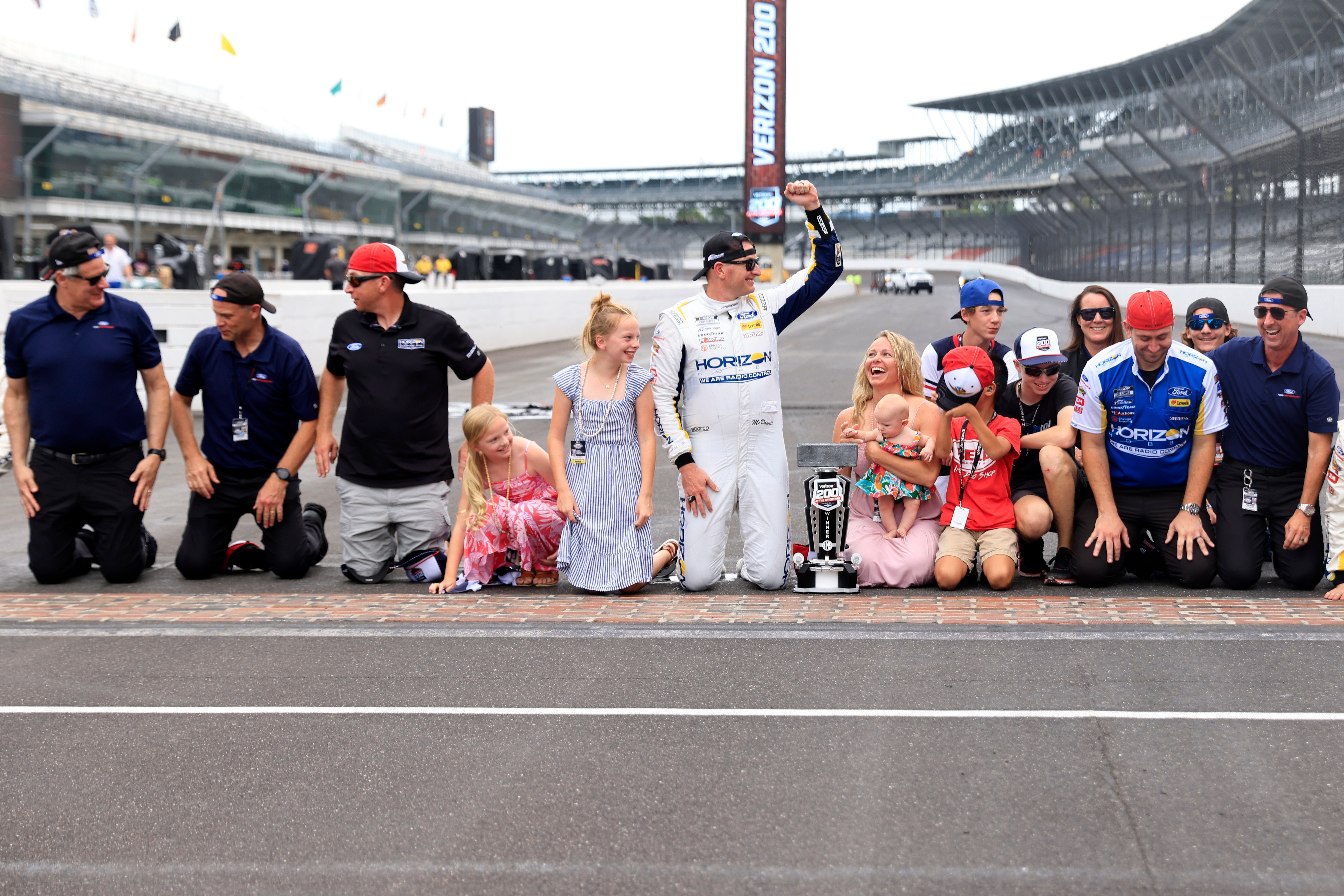 And now he is taking a knee alongside his brother and sisters to celebrate their father's second career trip to Victory Lane.