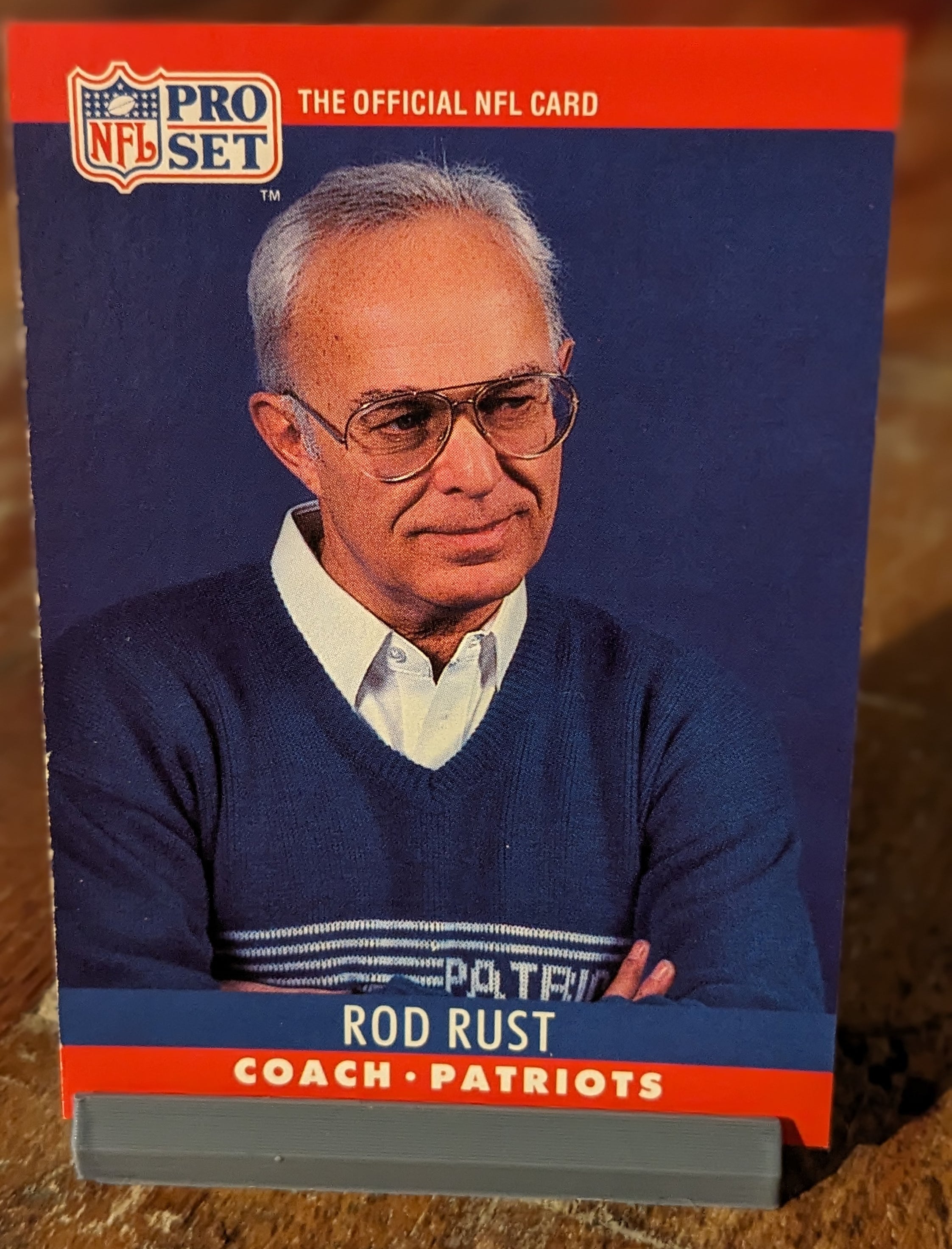 They don't put coaches on cards anymore. That's a shame. But at least we have this Rod Rust. Rust spent several years as a DC before getting a chance as Head Coach for the Patriots going 1-15 and never coaching again. He was clearly too old to shake the Rust off at that stage of his career. Maybe things would have gone better back in the 70s when he was still Rod Iron.