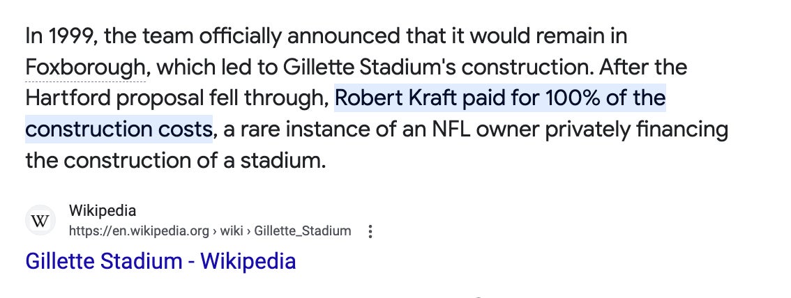 Tell them to do what Bob Kraft did back in 1999, and personally fucking finance the stadium themself. Yah, no joke. Probably the rarest thing to happen in sports these days. A billionaire using their own money to make even more money.