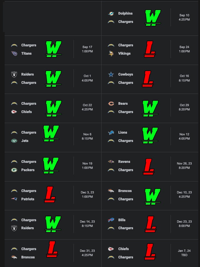 Some other info to keep in mind is that the Chargers currently have the 27th hardest strength of schedule. They will also be traveling the 5th most out the entire league which is gonna suck.
