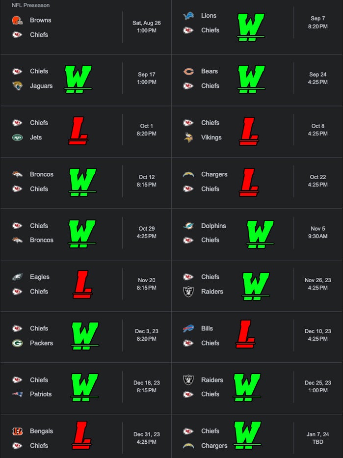 - VS NYJ: The Chiefs lose some weird ones (IE The Colts last year) and I think that will be the Jets in 2023. Unlike the Colts, the Jets SHOULD be a wagon and have a solid defense to back up the totally new offense.