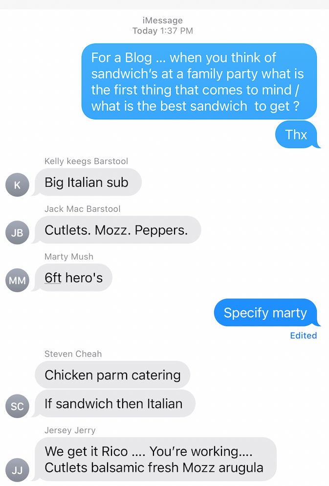 I also went to the text within the office. I used mostly NYC/NJ people as I wasn't sure people outside the tri state area even bring sandwiches to a party. The results were more of the same.