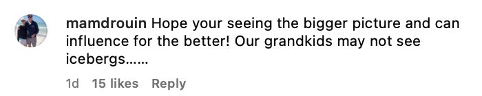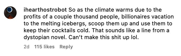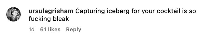 I will say that if you're part of a tourist trip filled to the brim with millionaires, many of whom have various posts lamenting global warming, and you're sharing photos of what appear to be glacier chunks in Dom Perignon mimosas or whatnot, you're gonna hear the internet rabble-rabble-rabble about it. You can't be surprised when that happens.