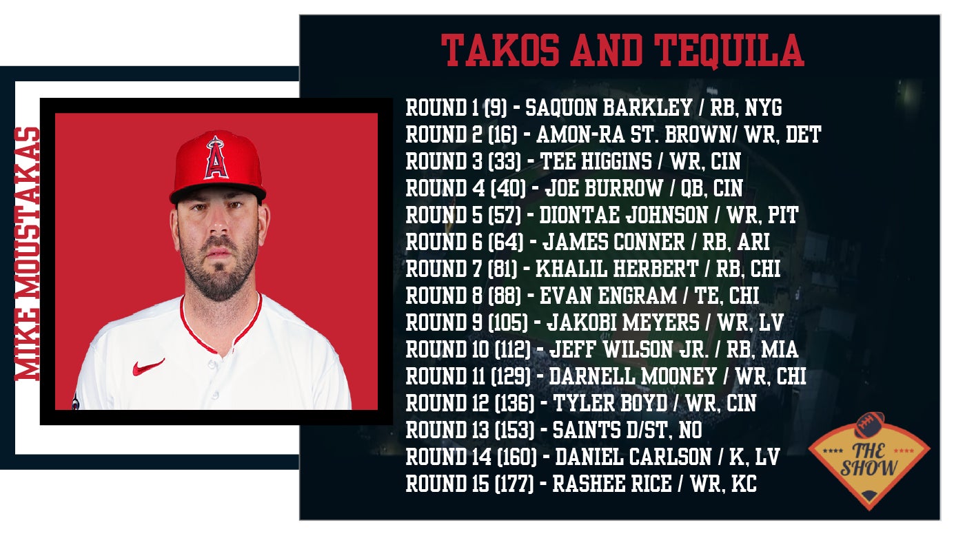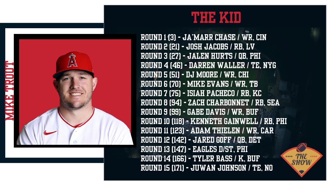 This was an interesting draft as they traded back from the #3 slot with Mike Trout for the #12 slot. Some people like picking at the back end, but I don't know if the depth this year warranted it. CeeDee Lamb is a nice player, but hard to get excited about as your 1st rounder. I do like Nick Chubb at #13 as he's a threat to lead the league in rushing. But he's not a pass catcher, so doesn't really play to the league format. I am pretty out on Deebo Samuel this year as he's my #31 overall WR. So picking him at #36 is not where I'd go there. Lamar Jackson as your fantasy QB guarantees an exciting year, but he hasn't played beyond Week 14 each of the past two seasons. If they want to make a title run, they'll need him fully healthy and to play meaningful football towards the end of the regular season. Christian Kirk in the 5th is a bit high for me as with Calvin Ridley's emergence, he falls to their #2 option. I also hate the JK Dobbins pick as the Ravens backfield is muddy and wildly unpredictable. Dobbins has also struggled with injuries over his first few years. That being said, I do think the peppering the draft with rookies will eventually work. Jordan Addison, Zay Flowers, Tank Bigsby, and Roschon Johnson could all be factors, but does this team have the patience to wait for them to blossom? If they all hit and Lamar stays healthy this could be a title contender, but there are too many IFs for my liking.