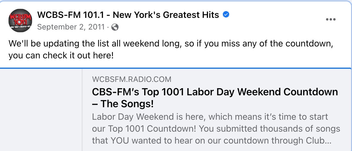 And Labor Day they would do the 1001 best songs. It would start Thursday or Friday and go all weekend.