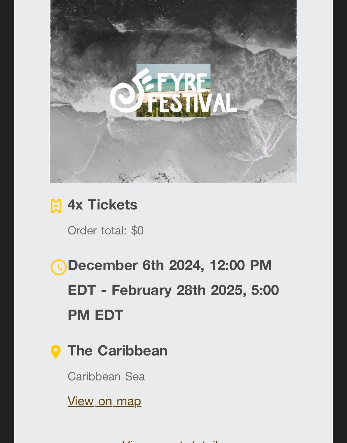 Now, I have just received tickets to Fyre Festival 2.0 in my email and text.