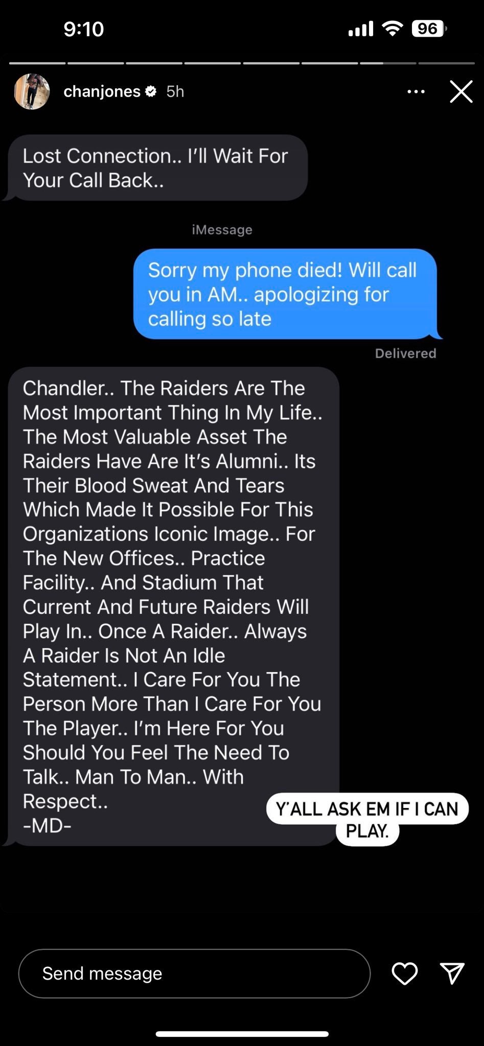 Chandler Jones Posted a Text Conversation with Mark Davis, Meaning His Weird Dynamic With the Raiders Has Achieved Terminal Velocity