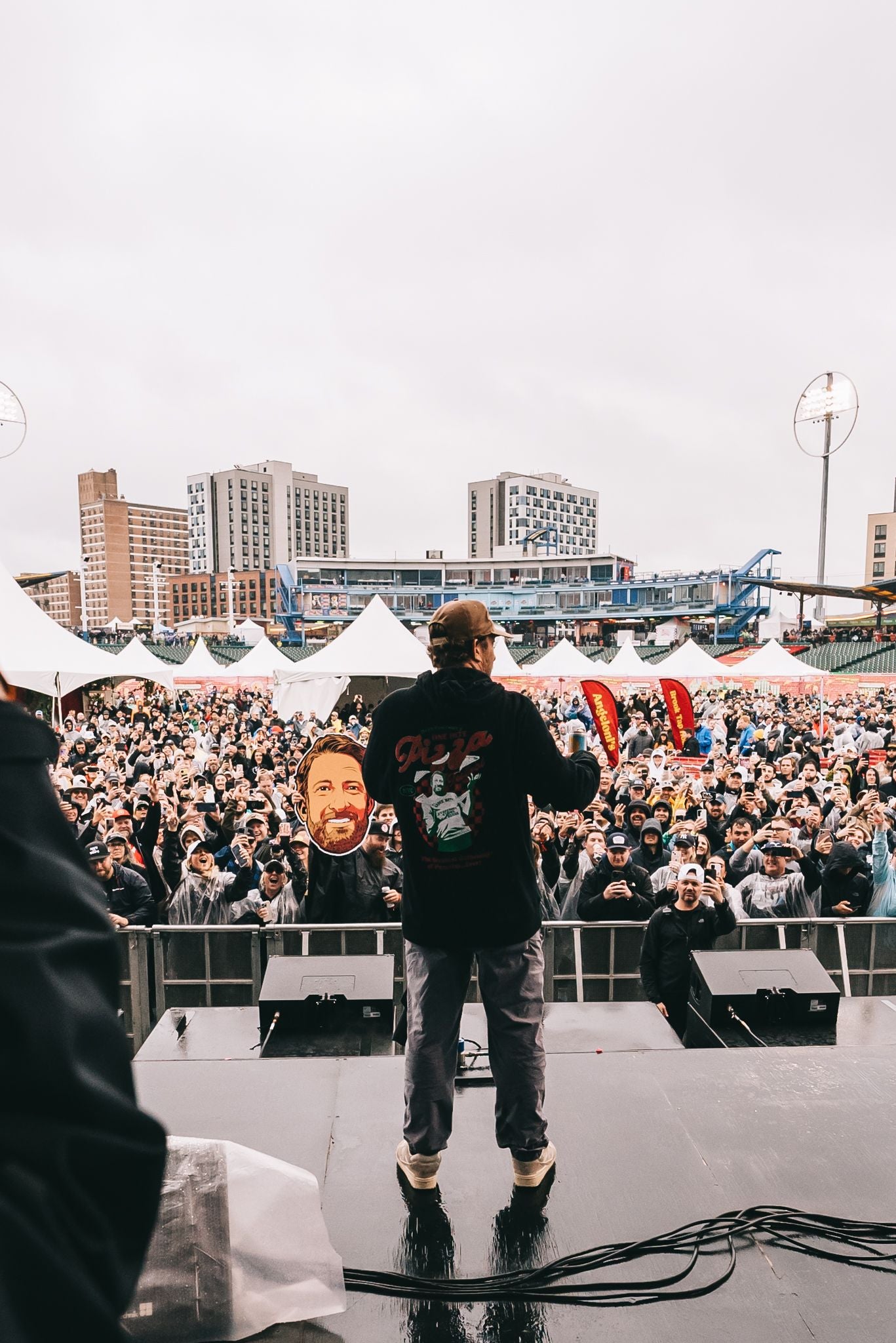 These people loved pizza, and loved Portnoy, and some not in that order. As my uber pulled up to the entrance on Surf Ave I was astonished at not just how many people were in line to get in, (holding umbrellas, or decked out in full rain gear), but also at how elaborate the setup was.