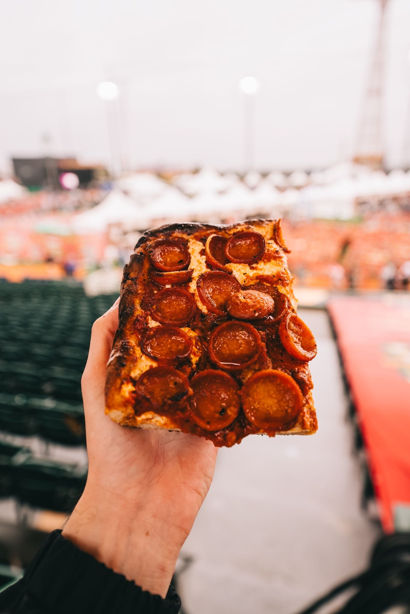 The thing I was most blown away by, besides the thousands of people who had been inside the stadium already for over an hour, housing slices of pizza, was the way the food tents were arranged, the lines in front of them moved efficiently, and the staggering amount of ovens.