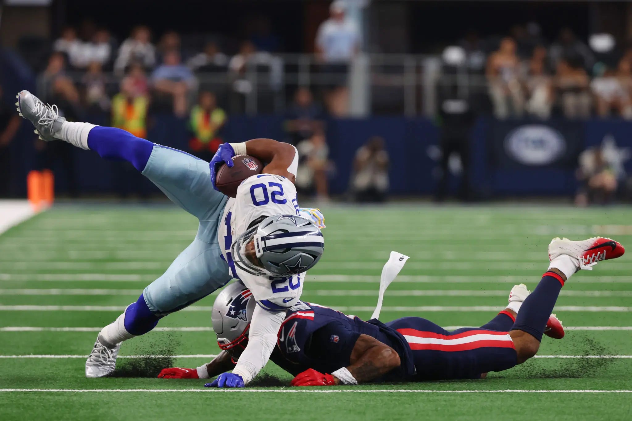 The best player on the 2023 Patriots has been rookie Christian Gonzalez. In his four career starts, he has taken on a Murderer's Row of elite wide receivers and has fought them all to a standstill. Despite the caliber of deep threats he had been taking on in solo coverage, often without safety help, he hadn't given up a touchdown, was giving up less than 10 yards per reception, was 13th among corners with a passer rating against of just 67.5 and was 9th in Pro Football Focus coverage grade. Plus he hadn't missed a down going into the Dallas game. And killed the Cowboys' opening drive by throwing a blanket party on a Cee Dee Lamb fade route in the end zone. He's been looking for all the world like one of GM Bill's best draft picks.