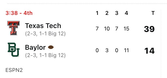 Can't be having that as Texas Tech is blowing the doors off of you at home. Just can't have it.