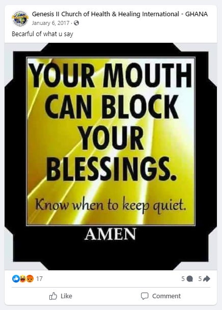 I did take a gander at the Genesis II Church of Health and Healing Facebook page. There was a major red flag. The church appears to have relied heavily on memes. You can never trust a church that memes. Especially churches that use vaguely threatening "God wants you to keep your mouth shut" memes.