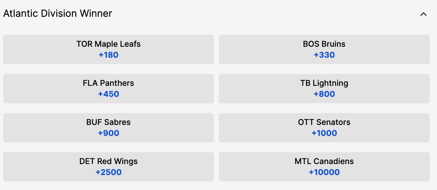 Current Odds have the Leafs taking the Division at +180 and you know Biz has his 401K on them again to win the Jug, but Tampa at +800 even without Vasilevskiy is worth a shot if you're a Bolts backer.