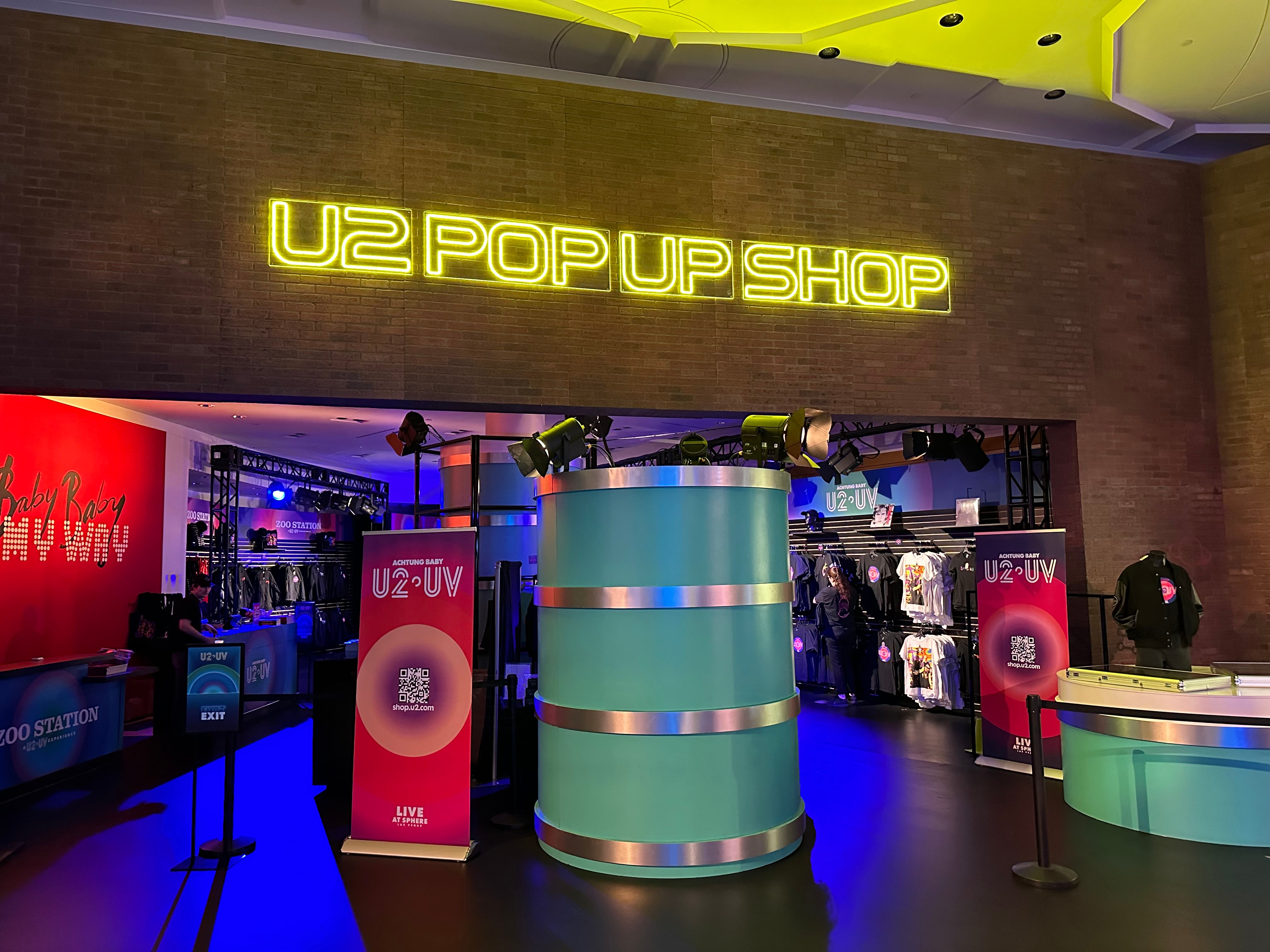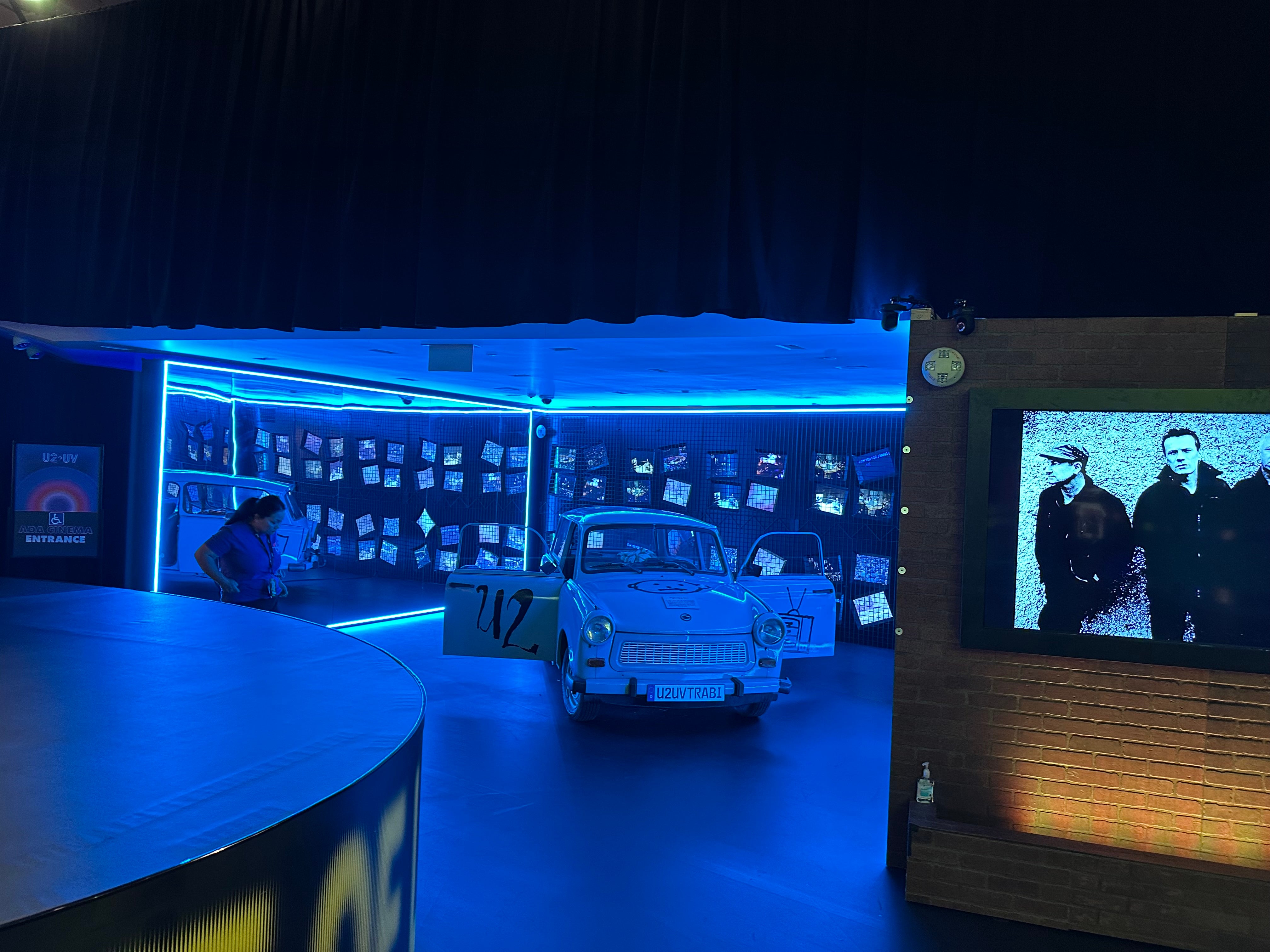 They’ve got various stations set up with full instruments where you can jam out, a vintage Trabant car where you can mix a classic U2 song using gear shifters, the pedals, and dash controls, and of course, an exclusive merch shop.