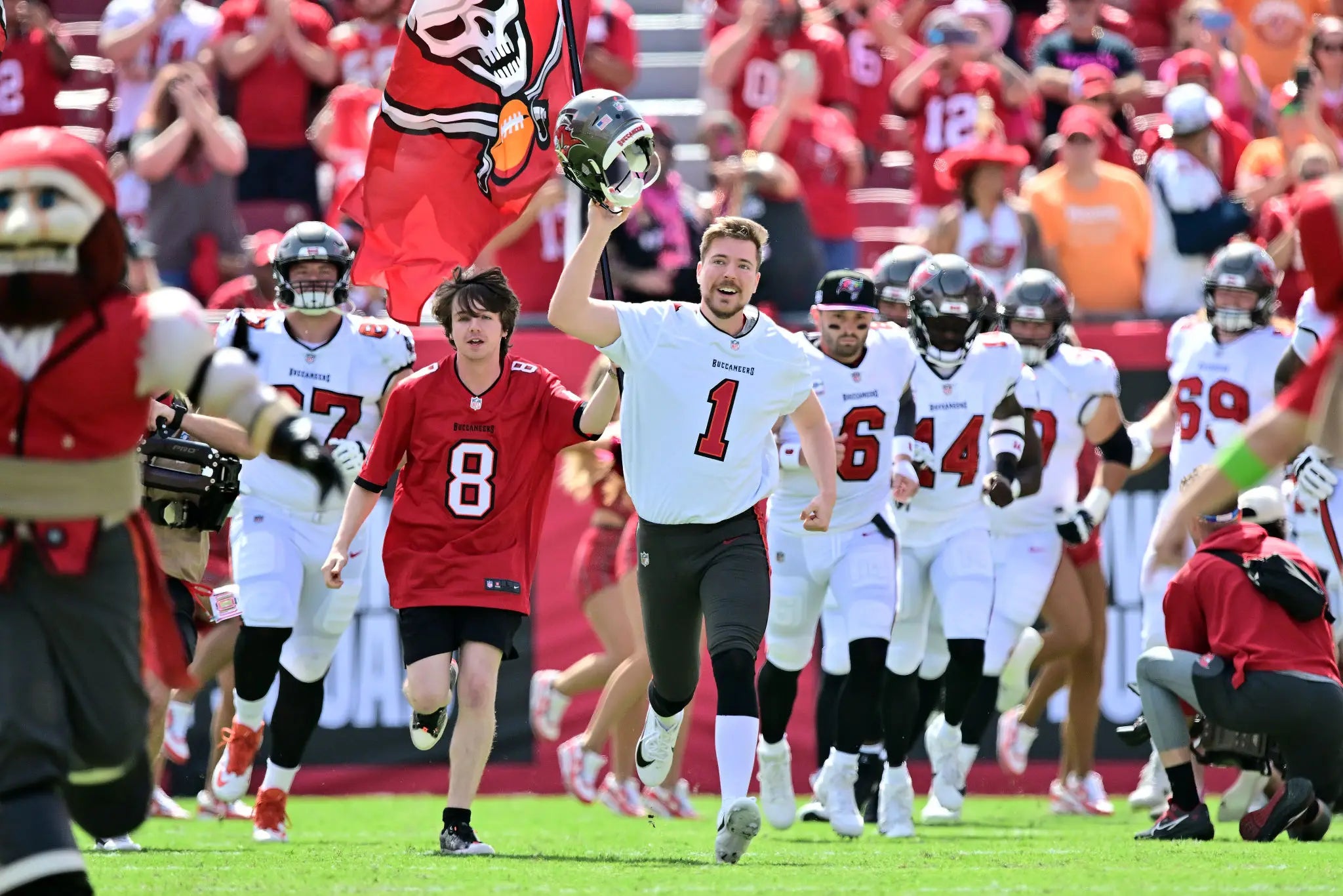 I would've run out like my hair was on fire. The crowd would have no choice but to give a standing ovation. The team would come out fired up, score first, and set the tone on defense. Guaranteed win? No such thing, but as close as you could come with me leading the team out of the tunnel. Mr. Beast? I'm glad you like the Bucs, but let's not make this a recurring thing.