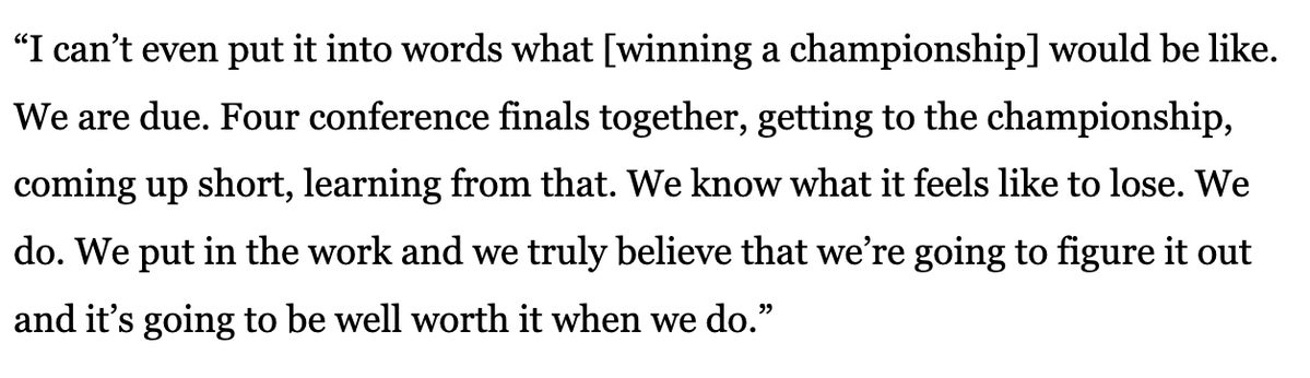 But at the end of the day, everything still comes back to Tatum and Brown. This is it, there really isn't a single excuse to be found as to why they shouldn't be able to get this done (barring health). The coaching is there, the talent is there, and maybe most importantly, the pain of failure is there.