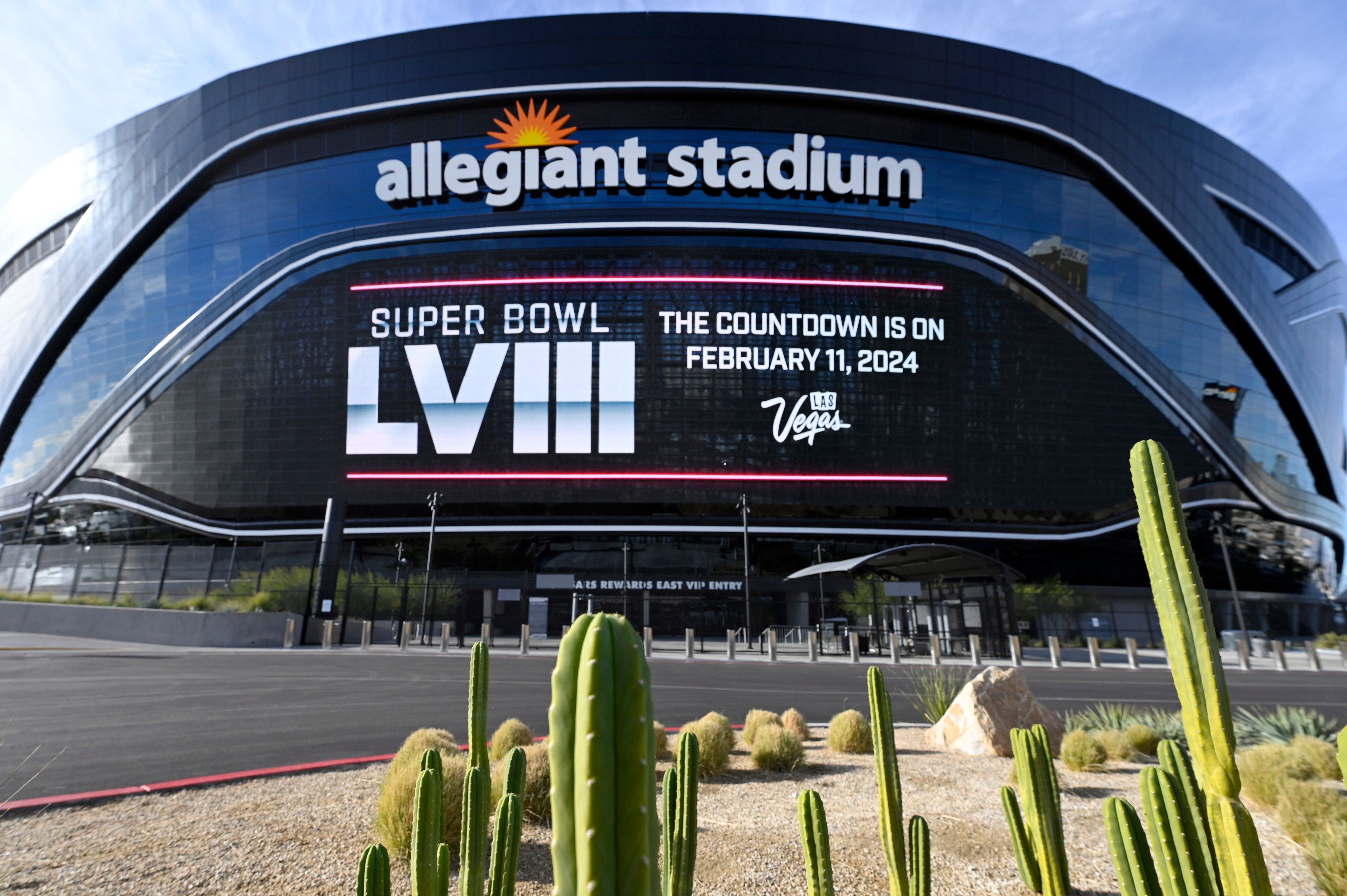 Anna points out that the upcoming one, on Feb. 11, 2024, at Allegiant Stadium in Las Vegas, has a purple and red logo. “It’s giving San Francisco 49ers versus. [Baltimore] Ravens,” she assessed.