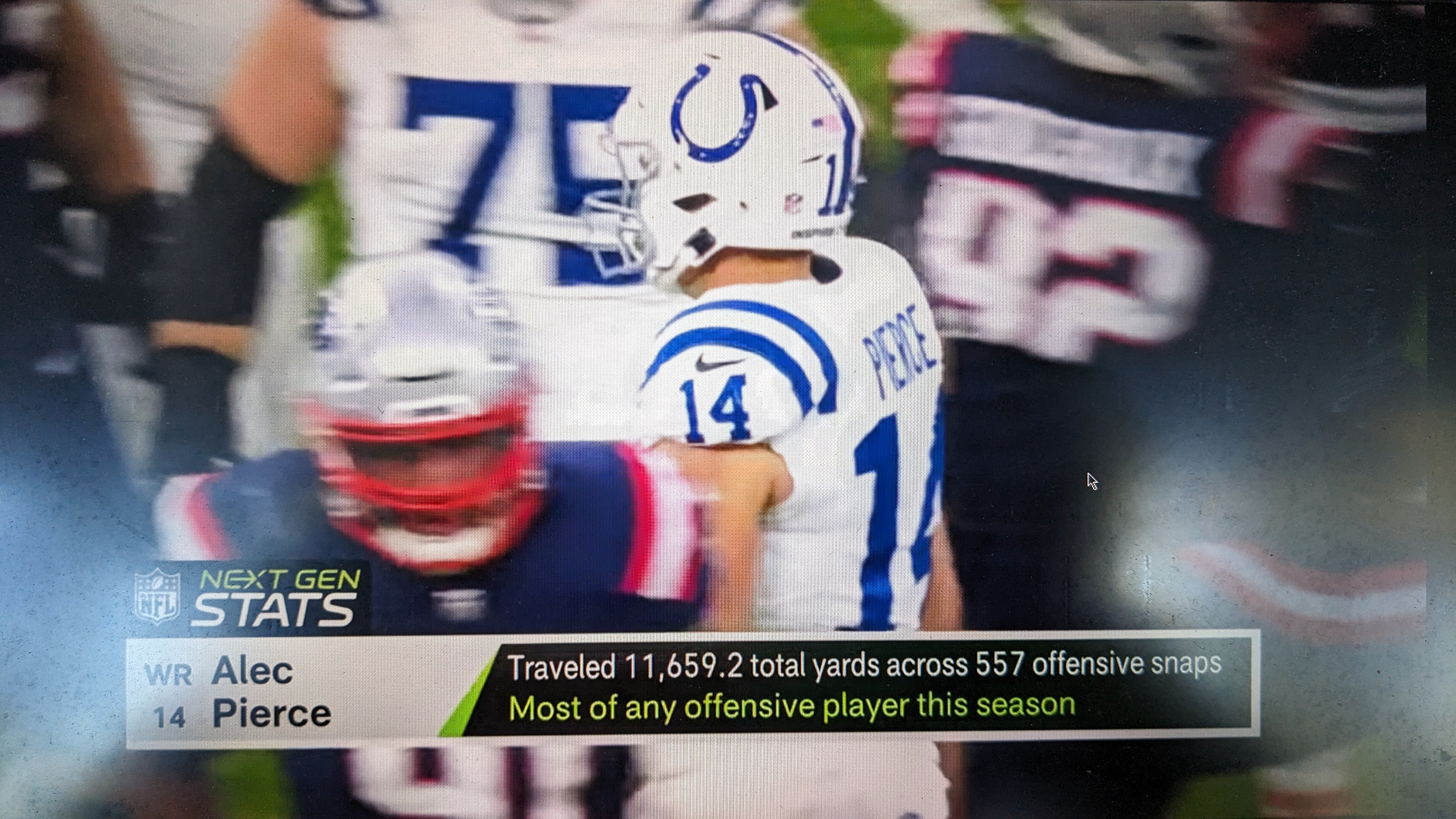 That's about 6.6 miles in the graphic above so he easily crossed the 7-mile mark on Sunday. Adding insult to injury, Colts came into Week 10 with the 5th most points in the league, so it's not like this is the Jets we're talking about here. Or the Giants. Or the Patriots. Or the Raiders. Or… (fucking hell, I actually could keep going couldn't I?)