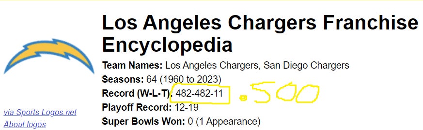 Sad Stat #5: The Chargers are where they always have been and will always end up being .500