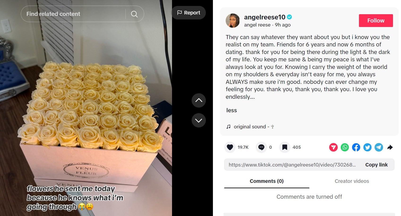 How did Reese respond to the suspension? With a video thanking her boyfriend for sending her flowers: