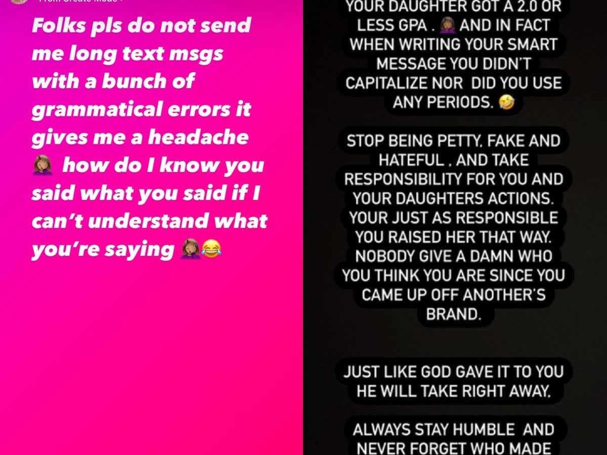 Whoever cropped those images that are now unavailable should be sent to Bolivian, but for context Reese's mother is on the left which seemingly came out of no where and Flau'jae's mother responded on the right calling her and Angel out.