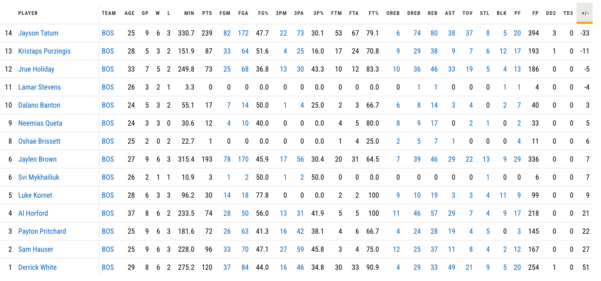- It makes no logical sense how the hell Tatum is a -33 in his last 9 games. We've never seen anything like this before at any point of his career. The crazy part is, the bench players he's playing with haven't been terrible! The fact is they are losing the Tatum minutes to start the game, and then when he and Jrue come back in with the bench, they're losing those minutes as well