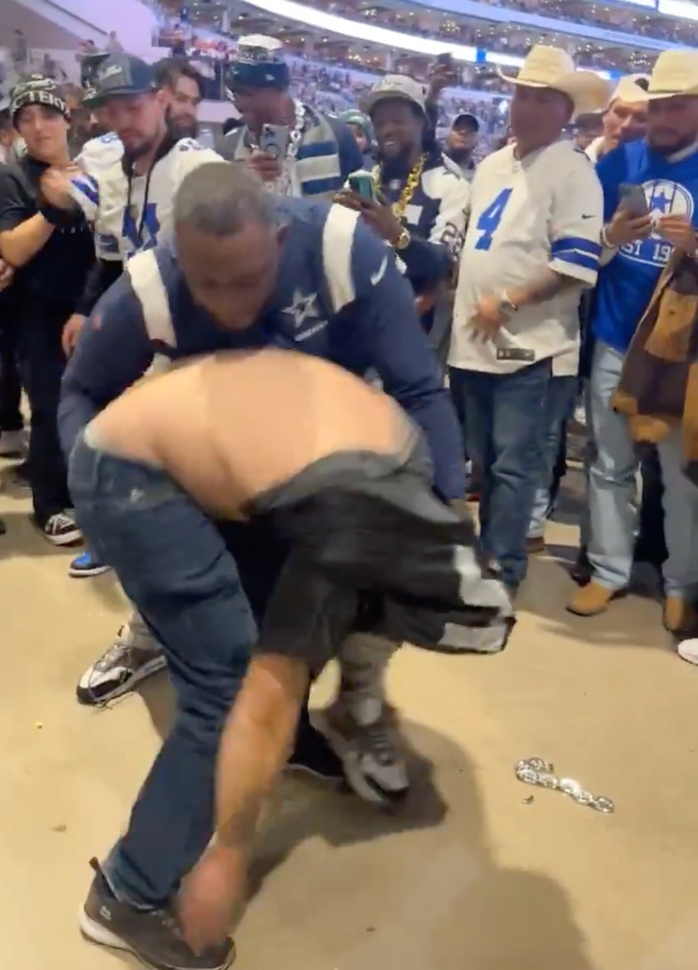 The Only Person That Got More Emasculated Than The Eagles Did Against The Cowboys On Sunday Night Was This Eagles Fan That Got His Ass Kicked By A Cowboys Fan In What Appeared To Be A WWE Hardcore Match