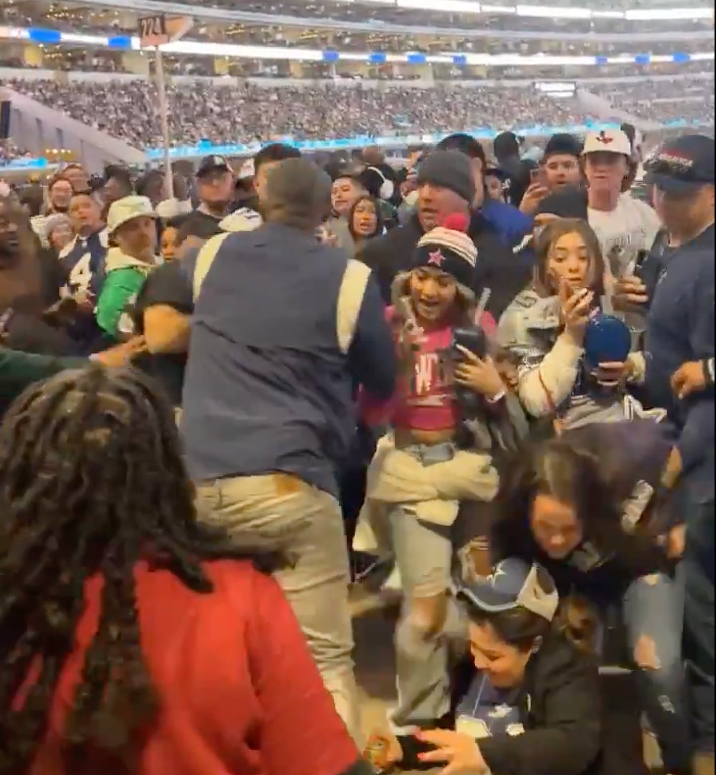 The only spinzone I have for Eagles fans is that this all may have been some sort of fake fight set up by the people that run the Cowboys Stadium because everything about the brawl just seemed too perfect like it was staged like a WWE hardcore match. You have the gladiators smashing into expensive merch, heads being slammed into a table, and a full crowd of people (including what may be kids) cheering the fighters on without a care in the world about getting sucked into the donnybrook.