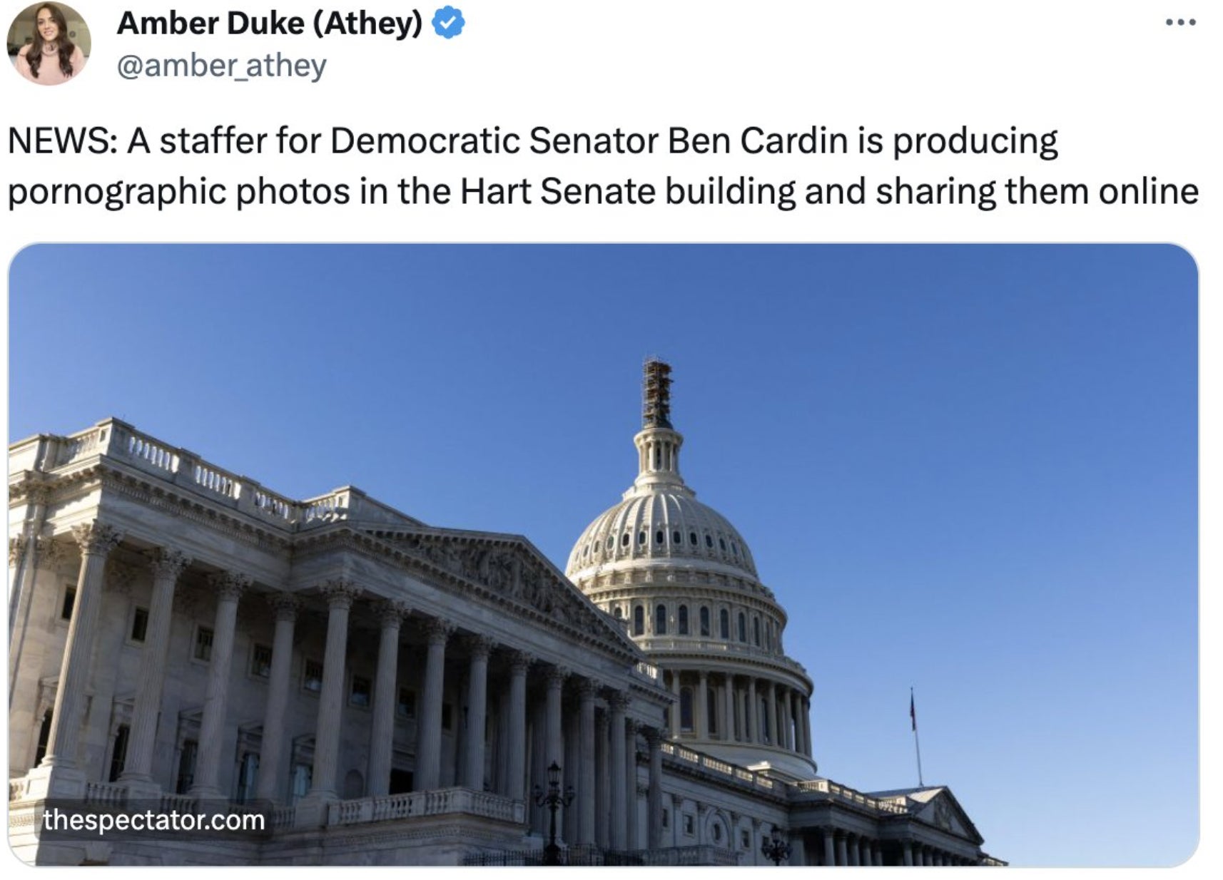 A video obtained by the outlet shows the staffer allegedly engaging in sex acts within what appears to be a conference room in the Hart Senate Office Building.