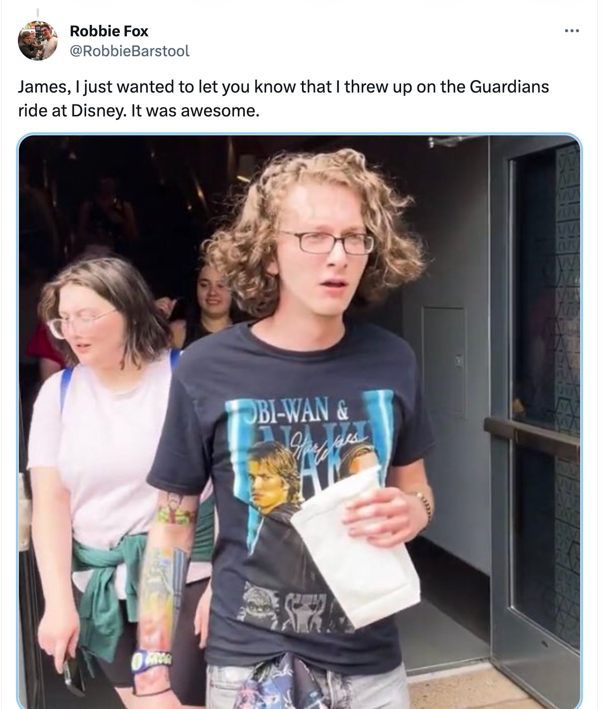 2. If you are going to die on a hill about line cutting, it shouldn't be on Soarin'. Don't get me wrong, it's a nice ride with some cool moments and nice smells that has absolutely soul crippling lines despite it being about 3.5/5 Balls as a ride. But there are better rides at EPCOT, which is easily the worst park for rides, let alone the rest of Disney World to go viral for looking like an asshole line cutter.