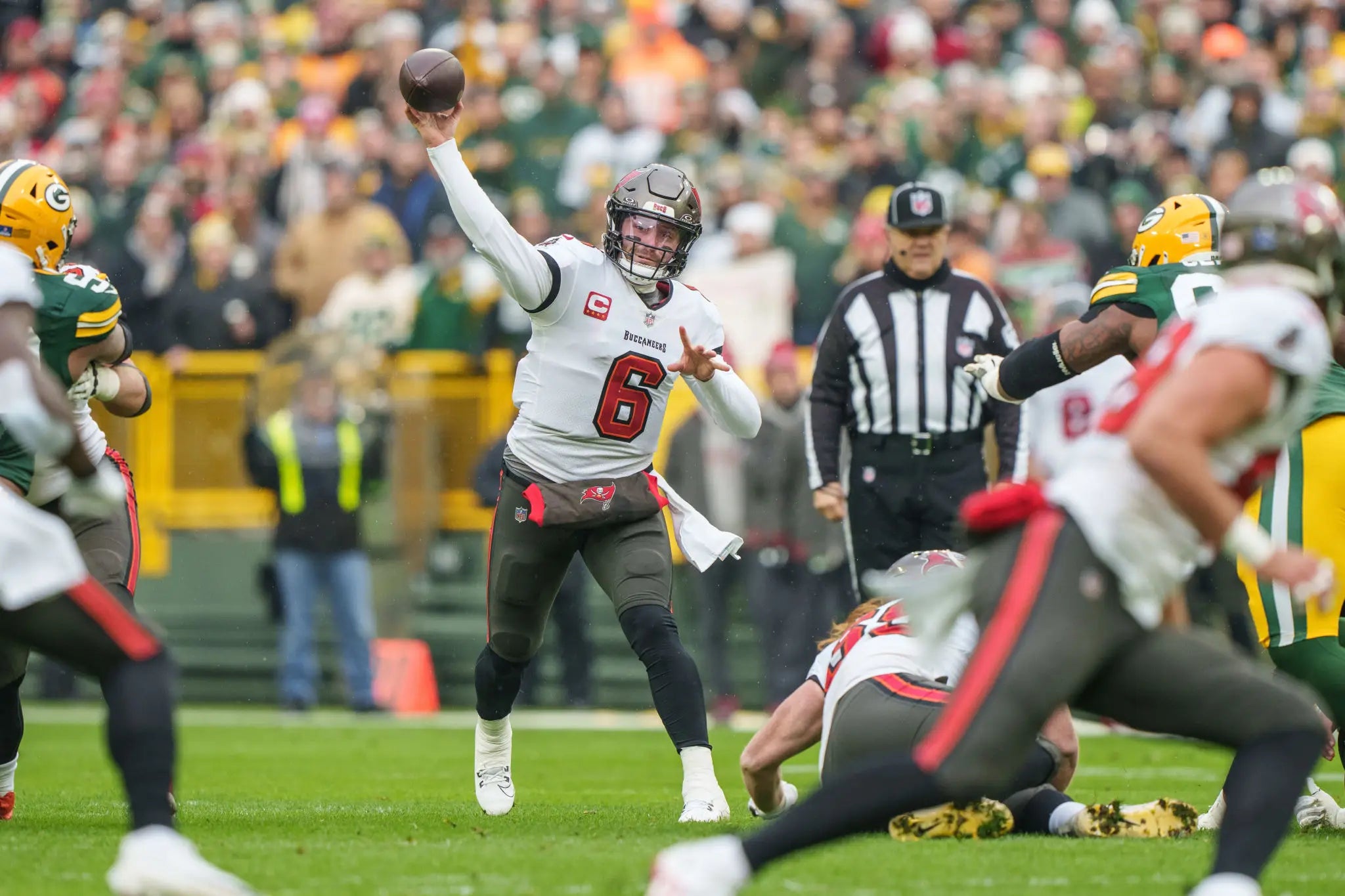The Buccaneers had a massive win against the division leading Falcons last week to take the crown, but needed to follow it up today with a huge conference game in Green Bay to maintain their lead. The Bucs started off hot with a Field Goal and a goalline stand, but shortly thereafter Baker Mayfield made his only real mistake of the day.
