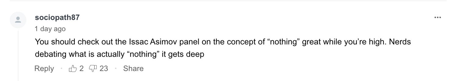Asimov often explored profound and complex scientific and philosophical ideas in his writings. For example, in his science fiction, he delved into concepts like the nature of consciousness, artificial intelligence, and the vastness of the universe, all of which might touch on philosophical considerations of "nothingness" or "void" in a broader sense.