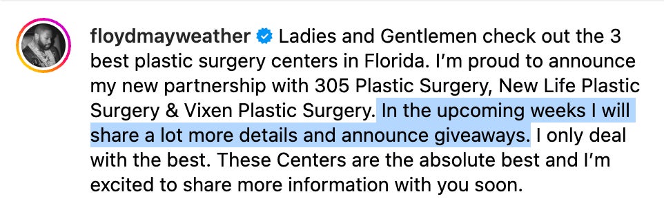 Floyd Mayweather Just Became An Investor In Three Huge Plastic Surgery Centers And Wants To Do "Plastic Surgery Giveaways" For People Who Want To Get Hot