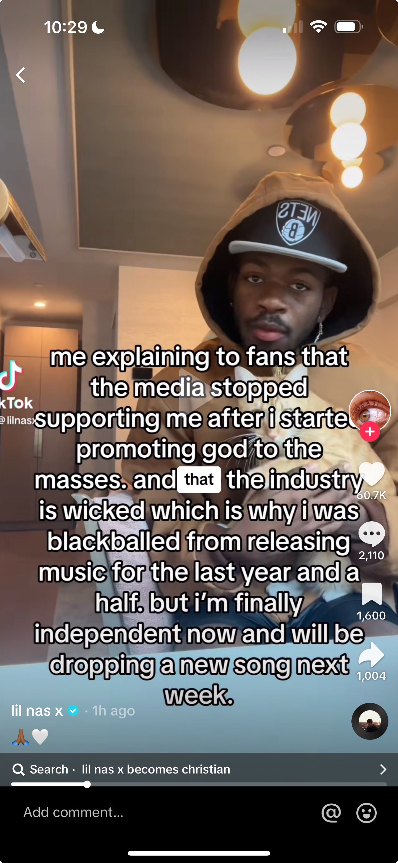 So color me stunned to see what a friend sent me this morning from Lil Nas’ TikTok.