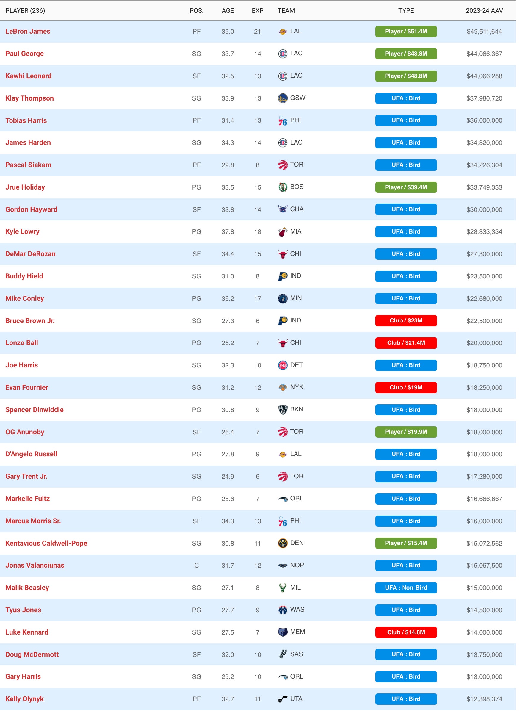 Looking at this list, I think we can also rule out guys like LeBron, OG Anunoby and Harden (Clips don't make that trade to not pay Harden), so once you start looking at these names it gets pretty dicey rather quickly.