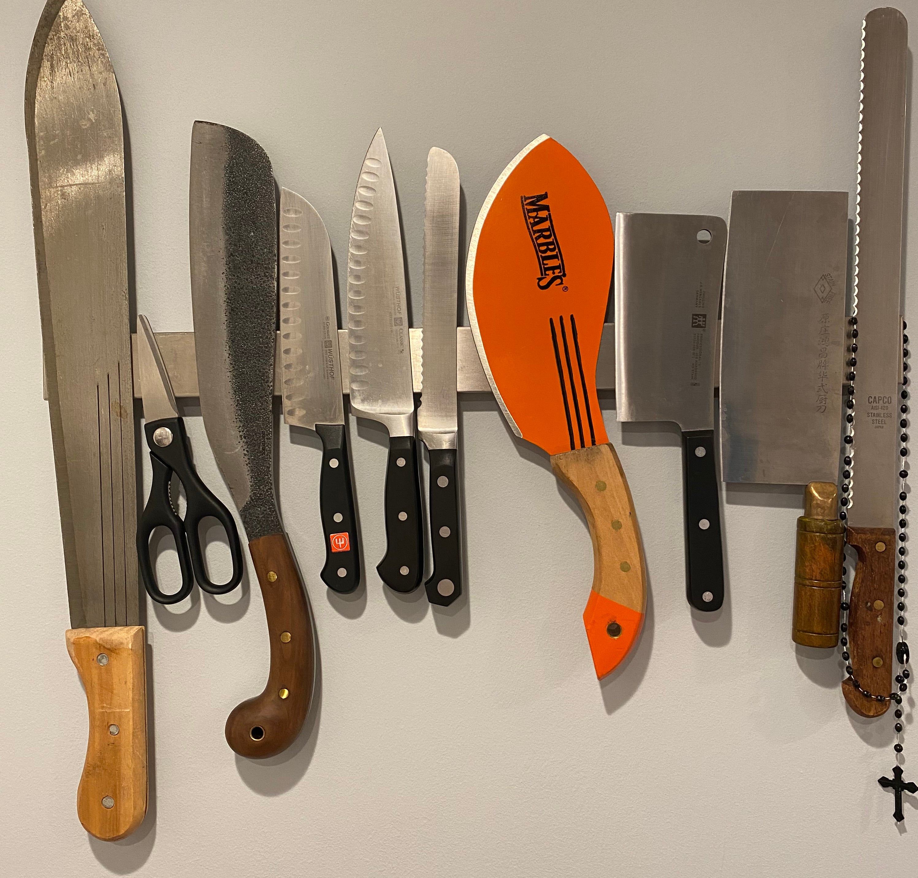I own dozens of knives and swords, I used to belong to a Knife of The Month Club, and the magnetic knife strip in my kitchen has some blades on there that just don't belong.