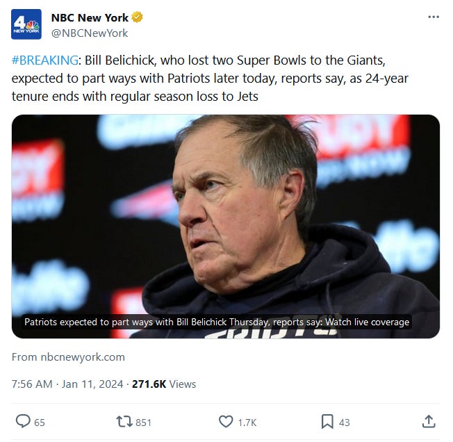 NBC New York Can Piss All the Way Off With Their Incessant Patriots Trolling