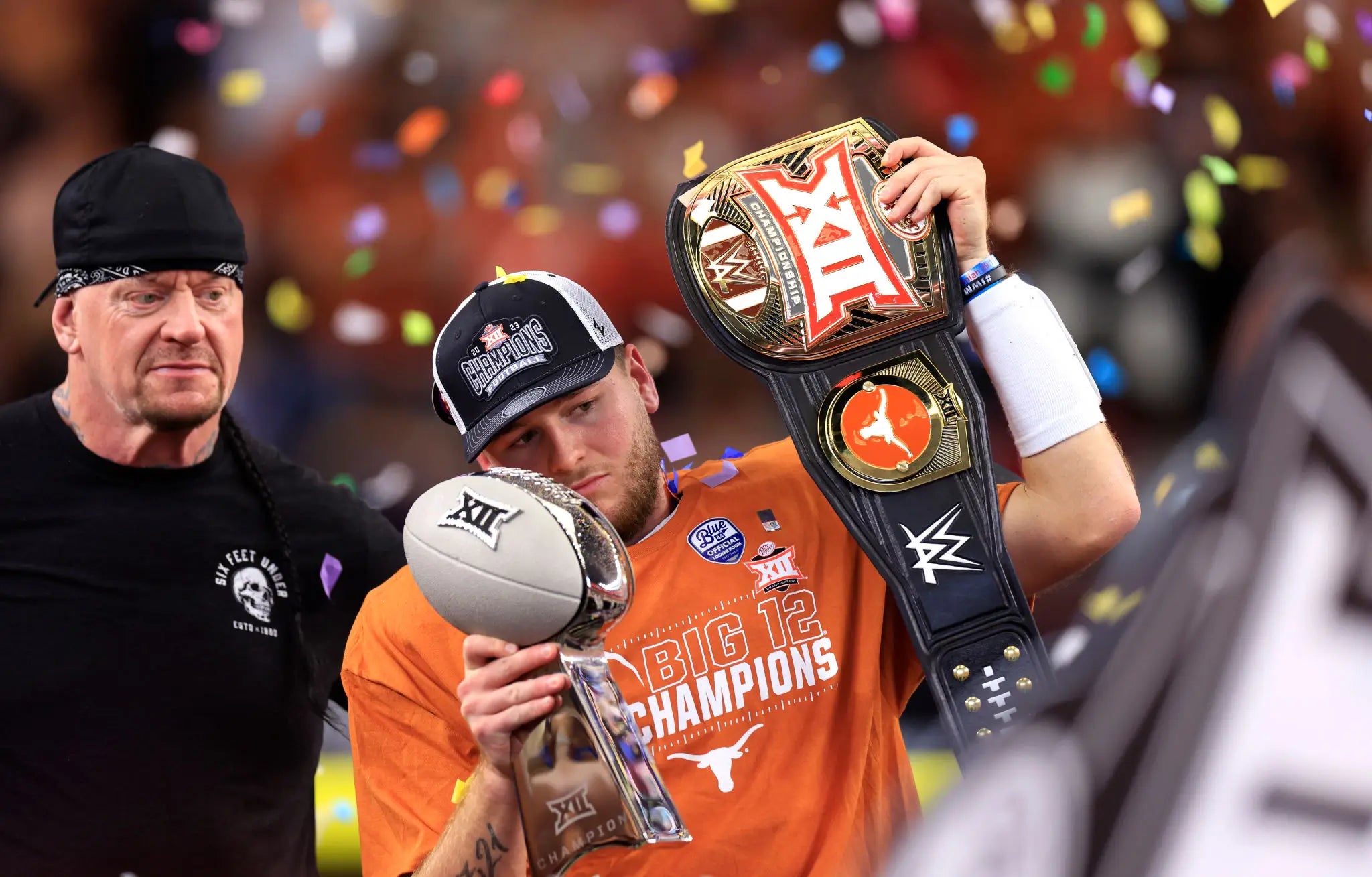 Ohh fuck yeah, this is what I want out of a trophy presentation. We know the WWE has ties everywhere, they were at the Big 12 championship game when they handed out a title bet. You guessed it, that was the Undertaker