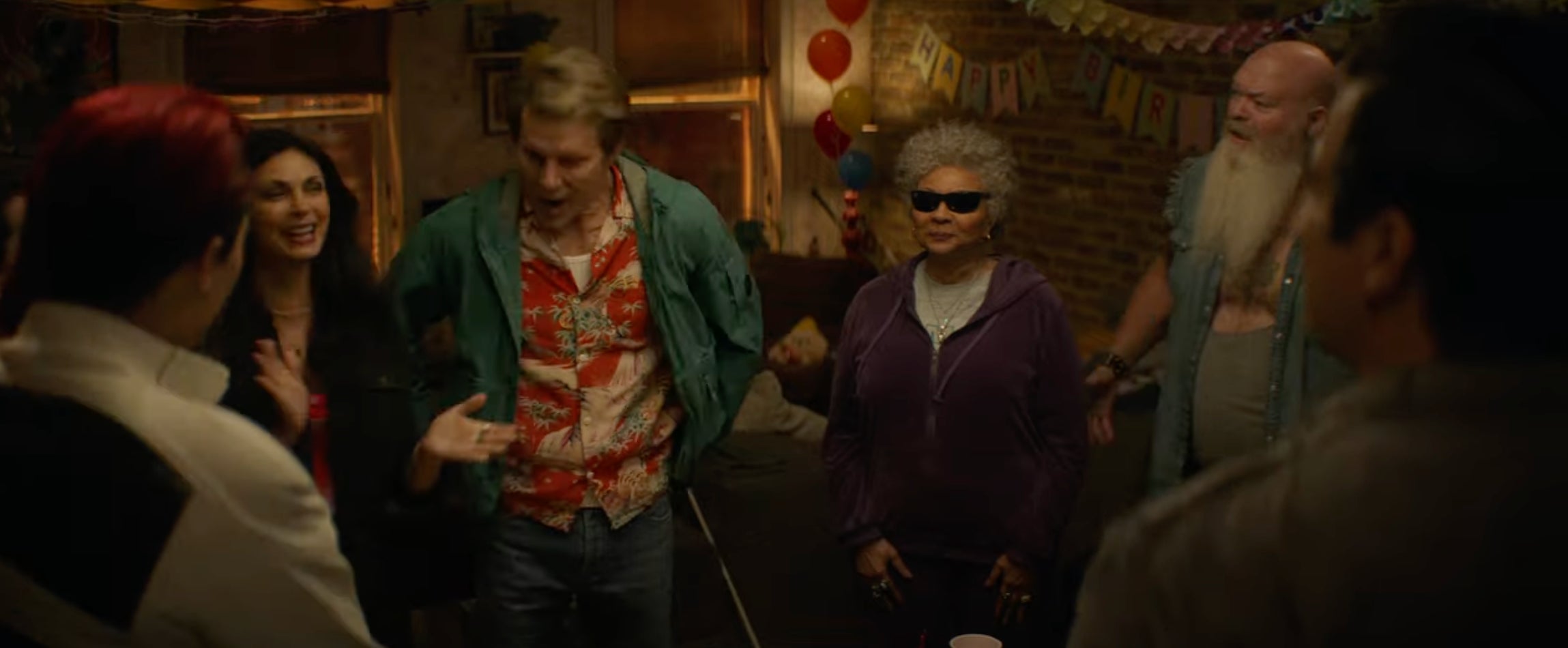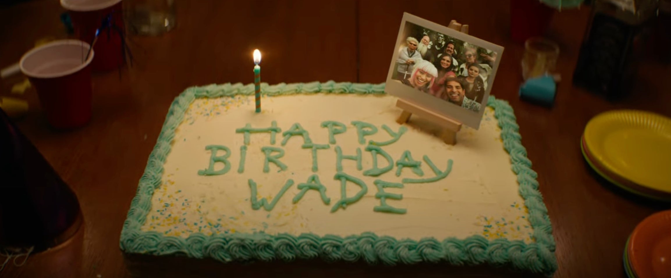 We kick things off with a Wade Wilson birthday scene, and he is sporting a BEAUTIFUL head of hair. Eat your heart out, Ken.