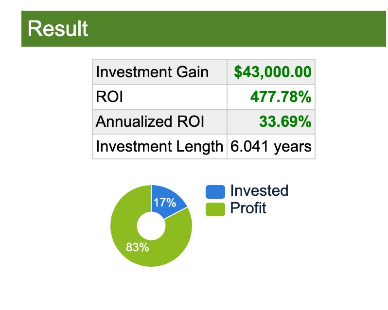 We are up close to 500% on that investment since then: