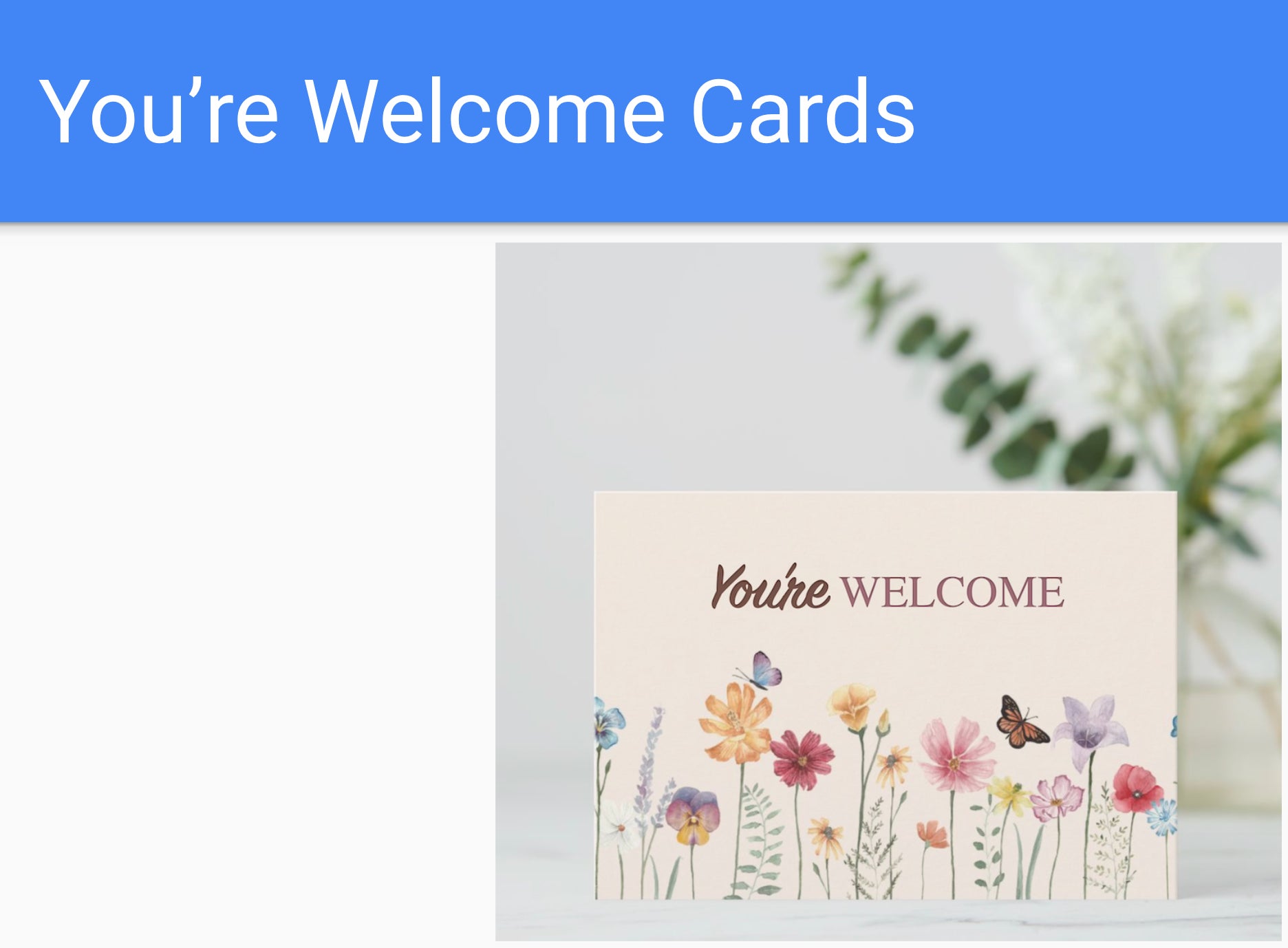 There's been times where I've received a really nice Thank You card with a lovely message, maybe after a wedding, and had an overwhelming feeling of "I should probably respond to this." But you can't just write back to a thank you card, that would feel bizarre. Well, enter "You're Welcome" cards!