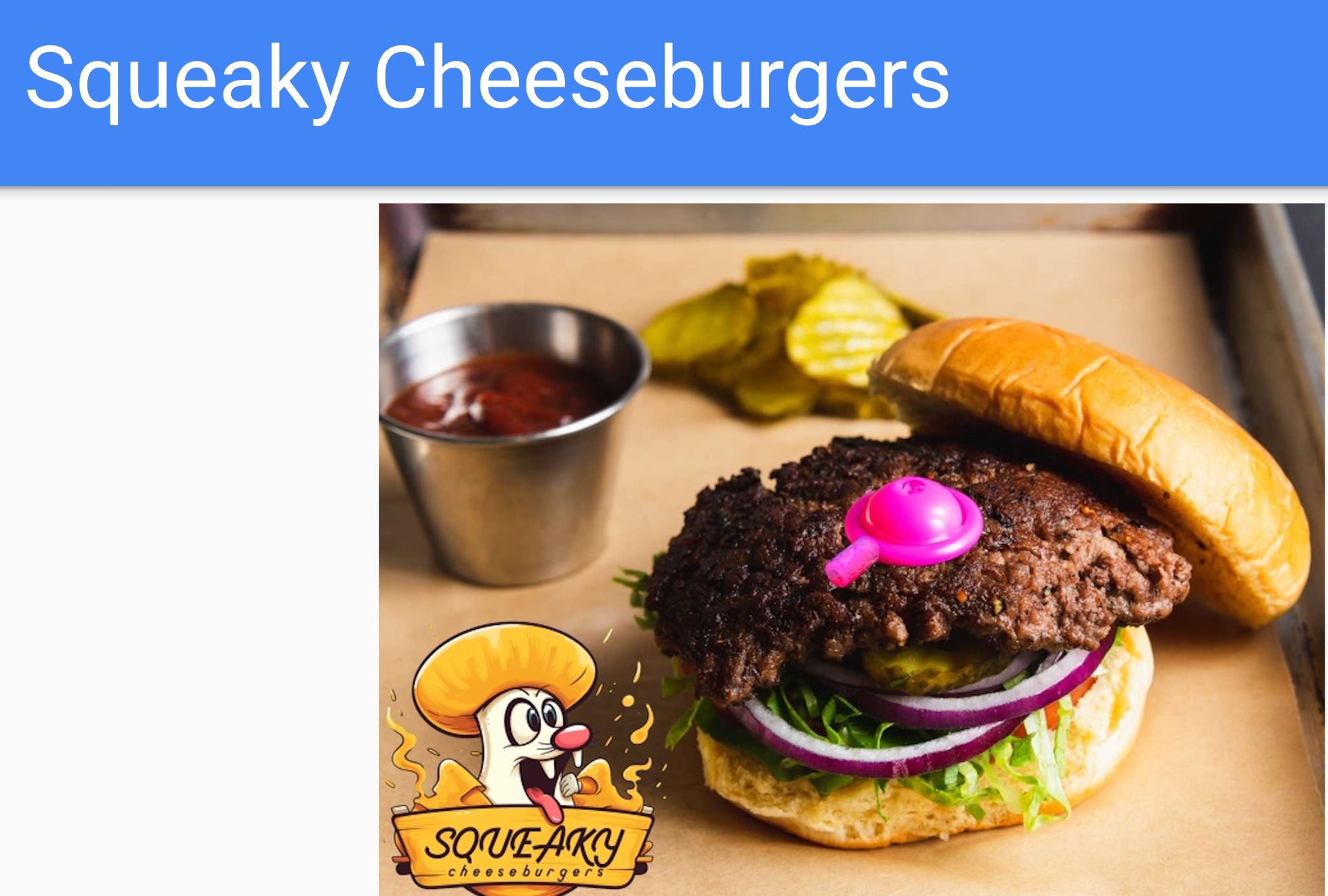 Have you ever been enjoying a delicious cheeseburger and thought, "Man this tastes so good, but I wish this burger had a squeaky sound when I bite into it?" Of course you have. We all have. Well here at Squeaky Cheeseburgers, you get that delicious burger and that sweet, sweet sound of squeaking.